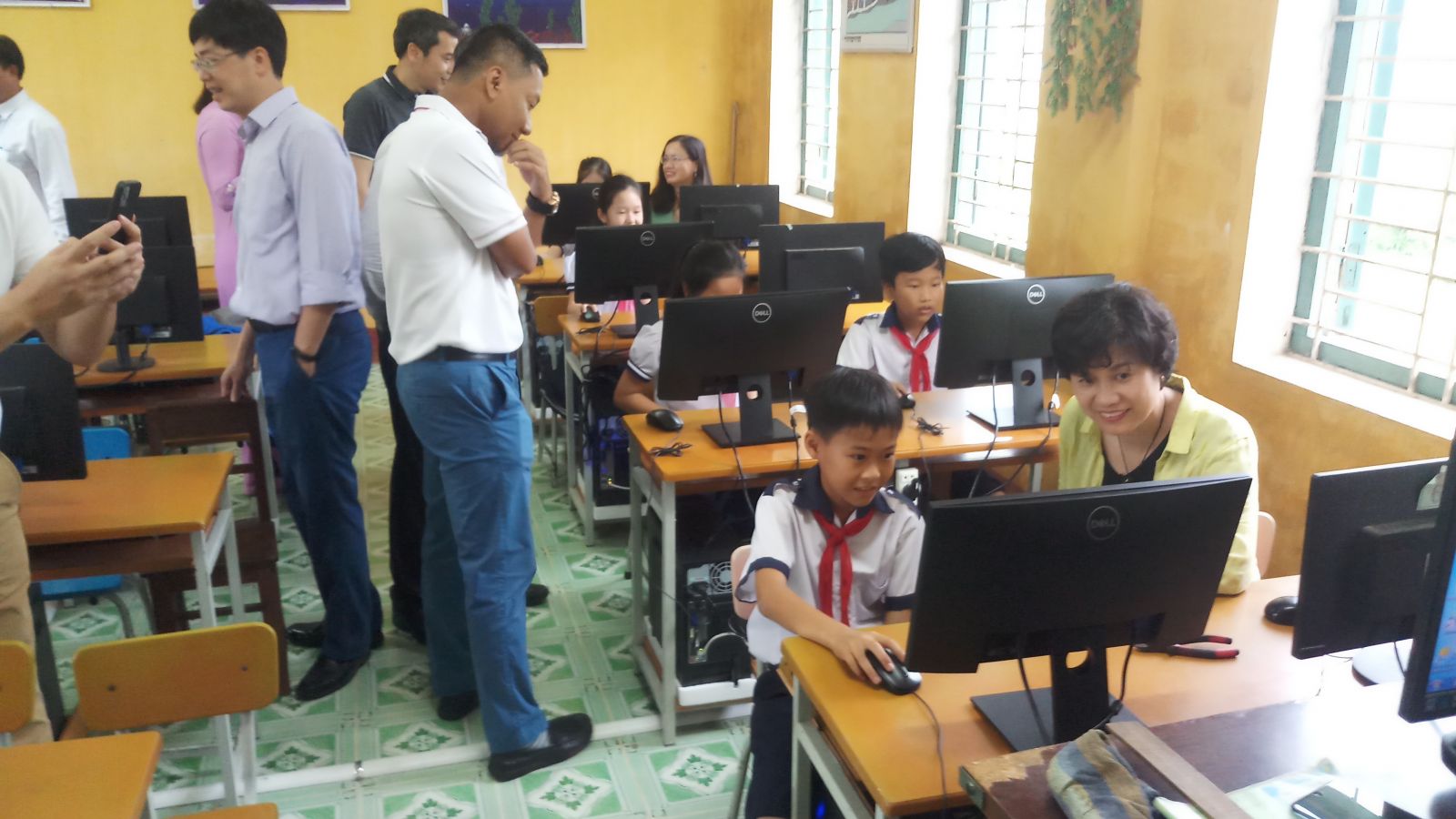 Học sinh Trường TH Quảng Thọ vui mừng khi có máy tính mới để học tập