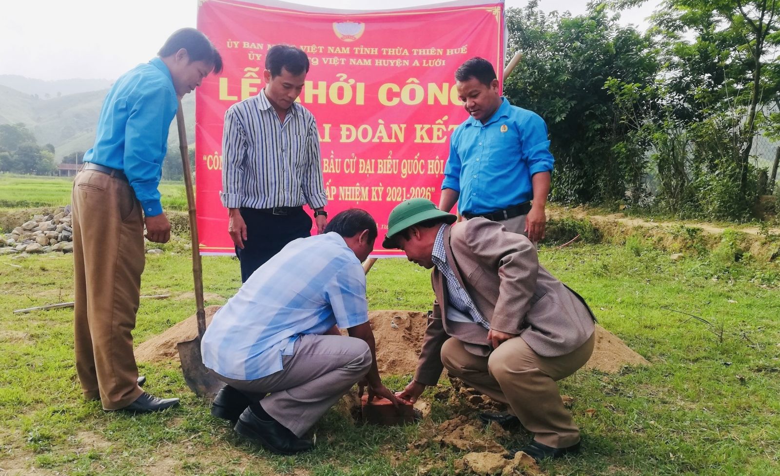 HNN.VN - Sáng 8/4, UBMTTQ Việt Nam huyện A Lưới phối hợp các đơn vị, địa phương tổ chức khởi công nhà Đại đoàn kết cho 3 hộ gia đình tại 3 xã Hồng Thủy, Trung Sơn và Hồng Bắc. Đây là công trình chào mừng bầu cử đại biểu Quốc hội khoá XV và đại biểu HĐND các cấp nhiệm kỳ 2021 - 2026.
