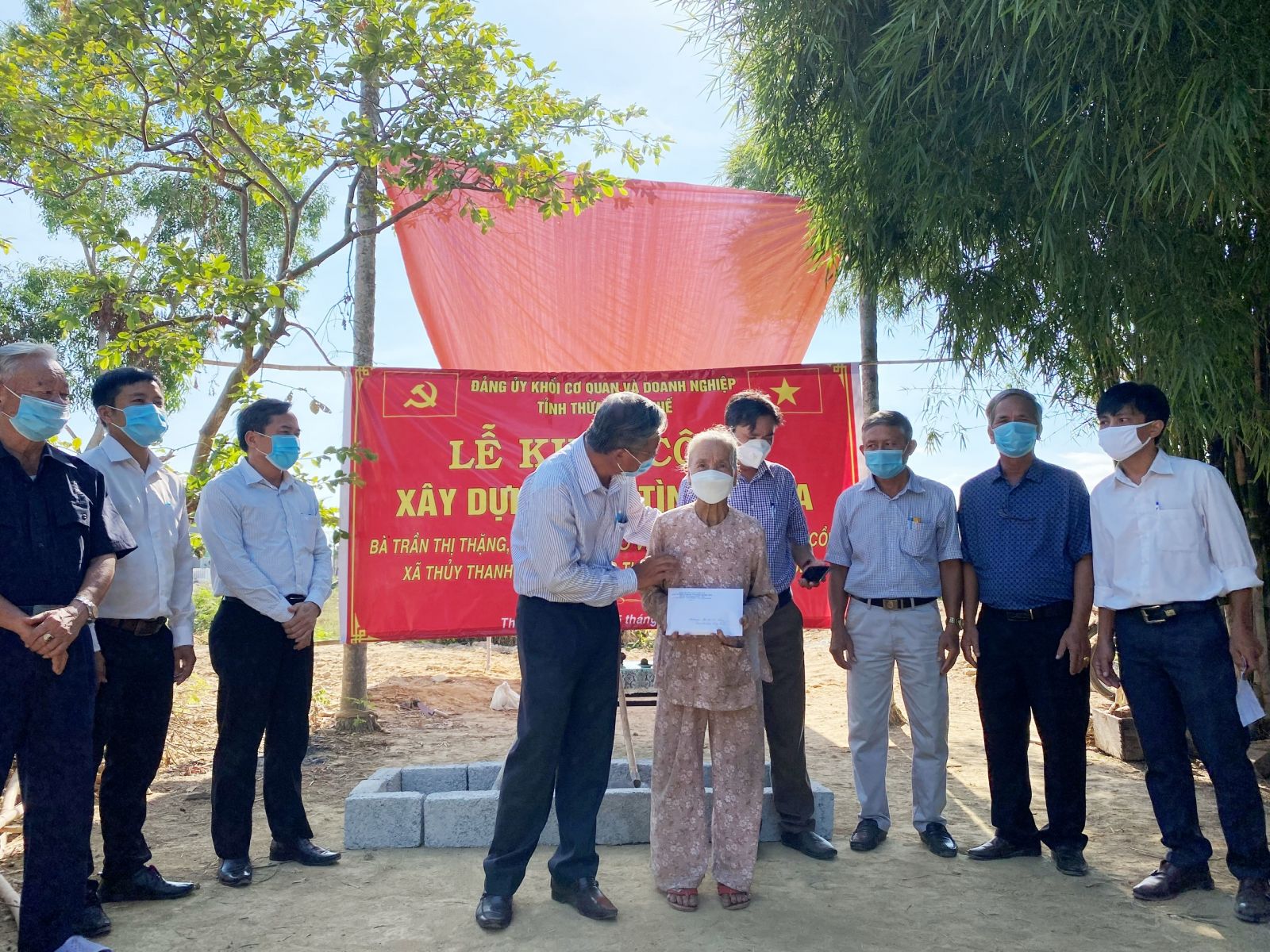 HNN.VN - Sáng 25/8, Đảng ủy Khối các cơ quan & doanh nghiệp tỉnh phối hợp với Đảng ủy, chính quyền xã Thủy Thanh, thị xã Hương Thủy khởi công xây nhà tình nghĩa cho gia đình bà Trần Thị Thặng ở thôn Lang Xá Cồn (xã Thủy Thanh, thị xã Hương Thủy).