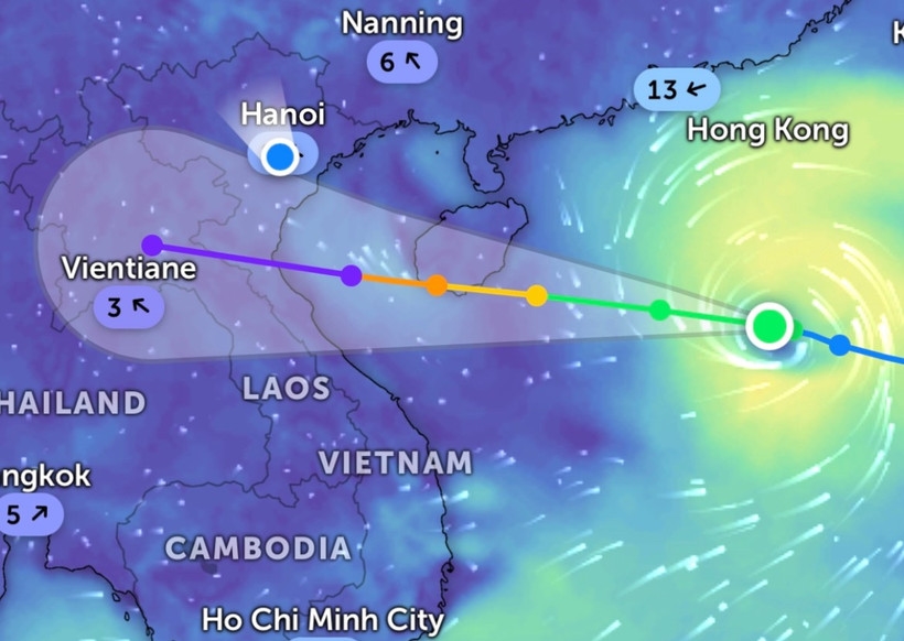 | Vị trí hiện tại bão số 5. (Ảnh Zoom Earth) |