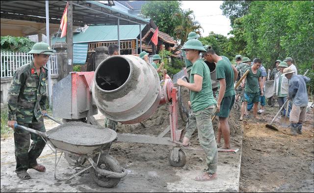 Cán bộ, chiến sĩ Trung đoàn 6 tham gia xây dựng nông thôn mới tại xã Lộc An, huyện Phú Lộc