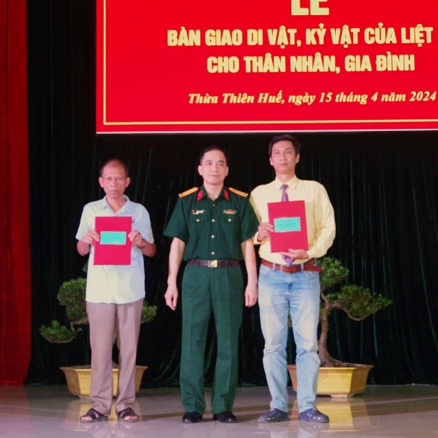 Hai liệt sĩ có di vật, kỷ vật được bàn giao tại buổi lễ gồm liệt sĩ Nguyễn Thúc Tề, sinh năm 1907, quê quán Hương Xuân, huyện Hương Điền (nay là thị xã Hương Trà), nhập ngũ năm 1945, tham gia Vệ Quốc đoàn, hy sinh năm 1950, nơi hy sinh Bắc Liên Khu 5; liệt sĩ Lê Văn Sơn, sinh năm 1919, quê quán Long Thuận, Cát Trọng, Minh Thành (nay là phương Thuận Hoà, thành phố Huế), nhập ngũ năm 1945, hy sinh ngày 16/7/1954, nơi hy sinh tại Quảng Ngãi. Các di vật, kỷ vật của liệt sĩ bàn giao cho thân nhân gồm giấy báo tử, lý lịch quân nhân, ảnh cá nhân, giấy giới thiệu sinh hoạt Đảng, giấy chứng nhận, bằng tốt nghiệp (phân hiệu Lục Quân Liên Khu 5), sổ tay cá nhân, sổ Can bạ, giấy thuyên chuyển, bằng y tá Quân y.