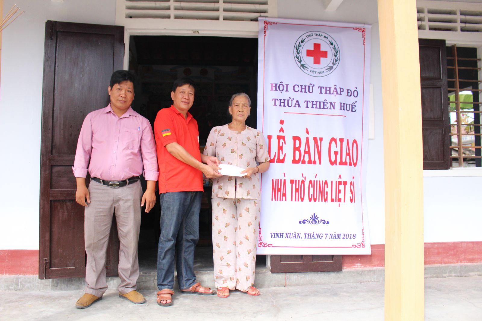 HNN.VN - Chiều 25/7, Hội Chữ thập đỏ tỉnh đã đến thăm và bàn giao nhà thờ phụng sau tu sửa cho gia đình liệt sĩ Võ Mai tại thôn Xuân Thiên Thượng, xã Vinh Xuân, huyện Phú Vang.