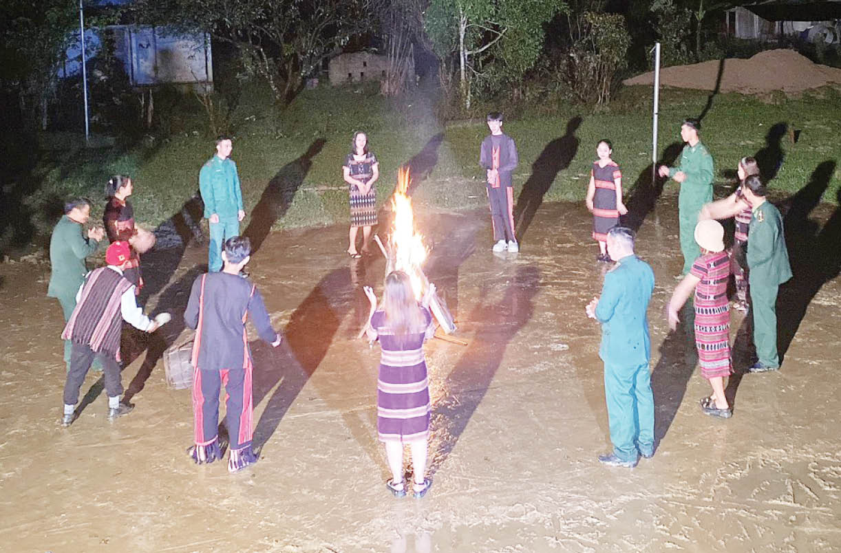 Tiết mục đốt lửa trại được luyện tập để mừng xuân mới