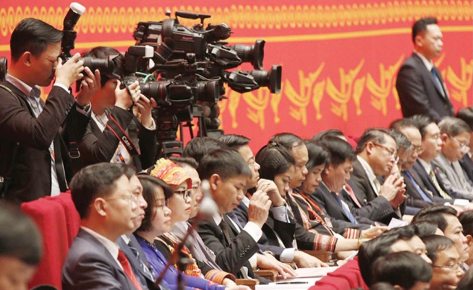 Báo chí có vai trò, nhiệm vụ quan trọng cung cấp thông tin chính thống, góp phần định hướng tư tưởng, dẫn dắt dư luận (Trong ảnh: Phóng viên tác nghiệp tại Đại hội XIII của Đảng). Ảnh: dangcongsan.vn
