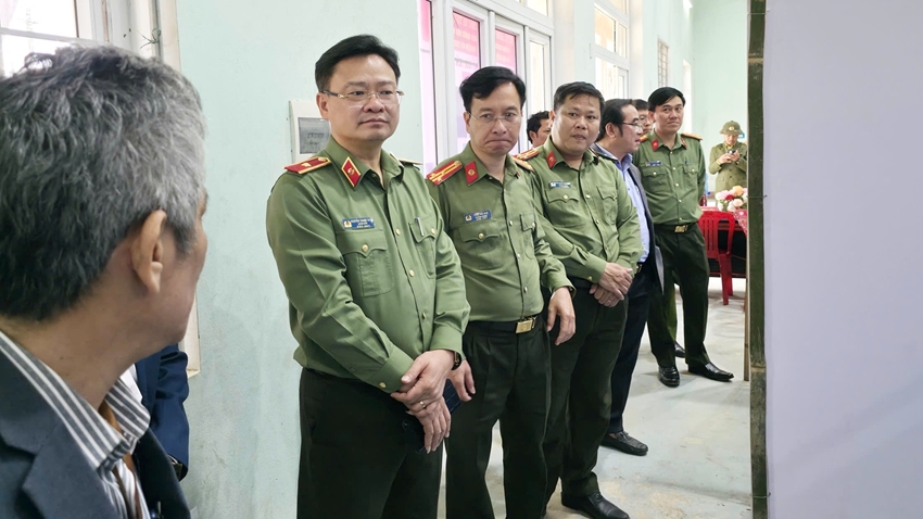 | Thiếu tướng Nguyễn Thanh Tuấn (thứ 2 từ trái sang), Giám đốc Công an TP. Huế kiểm tra tại điểm bầu cử thuộc xã A Lưới 4 |