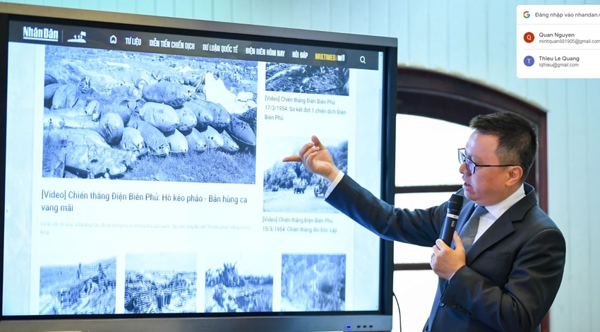 Đồng chí cho biết, quá trình sàng lọc, lựa chọn thông tin được triển khai một cách thận trọng, kỹ lưỡng. Báo Nhân Dân đã phối hợp cùng Bộ Quốc phòng, Viện Lịch sử Quân sự để thu thập dữ liệu và xây dựng bộ thông tin bài bản. Viện Lịch sử Quân sự đã hỗ trợ xác tín thông tin và đúc kết những nội dung ngắn gọn nhất. Ngoài ra, Báo có đối tác công nghệ lâu năm, từ đó trao đổi để tạo ra giao diện, tương tác hấp dẫn trên chuyên trang.