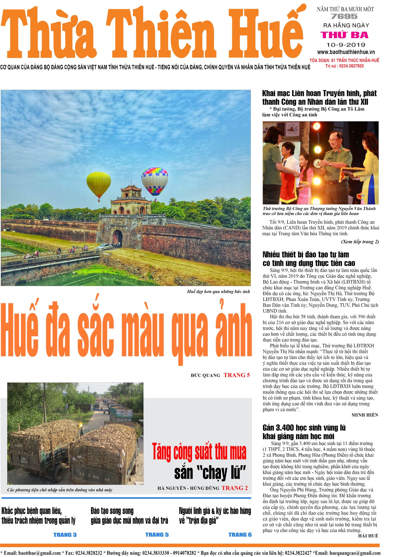 Trang nhất Thừa Thiên Huế số 7695, ra thứ 3, ngày 10/9