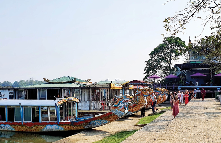 | Du khách đến Huế và sử dụng dịch vụ thuyền rồng tham quan thành phố |