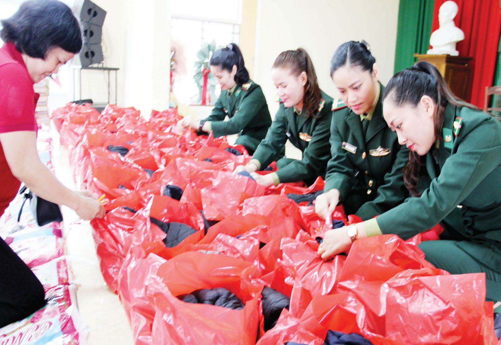Nhiều giờ đồng hồ vượt chặng đường dài lắm đèo dốc khúc khuỷu, ngoằn ngoèo nên Thiếu tá Trần Thị Nam Phương, Chủ tịch Hội Phụ nữ BĐBP tỉnh và các nữ đồng đội là Thiếu tá Nguyễn Thị Hiền, Thượng úy Vũ Thị Nhớ và Thượng úy Lê Thị Thủy Tiên say xe đến “tái xanh tái xám”. Nhưng khi đến xã A Roàng, vừa “chạm” những nụ cười của bà con dân bản, cái mệt liền tan biến. Lúc đó, Trung tá Lê Văn Tuấn, Chính trị viên, Trung tá Nguyễn Hữu Trí, Chính trị viên phó và nhiều cán bộ, chiến sĩ Đồn Biên phòng Hương Nguyên cũng đã có mặt. Các chị cùng đồng đội thoăn thoắt sắp xếp, để những phần quà nhanh chóng được trao tận tay bà con. Ngoài tiền mặt, gạo cùng nhu yếu phẩm cần thiết, nhiều phần sữa và bánh kẹo được tặng thêm cho các cháu nhỏ; chăn ấm, áo ấm tặng người già.