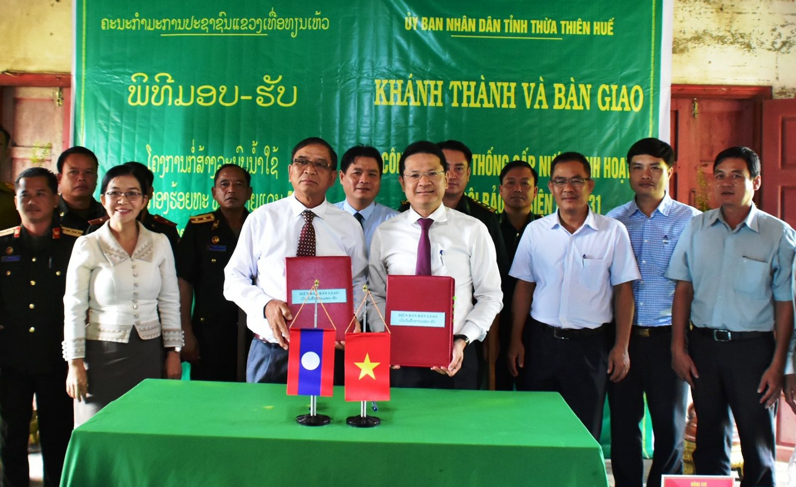 HNN.VN - Sáng 8/9, UBND tỉnh tổ chức bàn giao công trình hệ thống cấp nước sinh hoạt (Công trình) cho Đại đội Bảo vệ Biên giới 531 thuộc Bộ Chỉ huy quân sự tỉnh Sê Kông (Lào). Công trình này do Thừa Thiên Huế hỗ trợ cho Uỷ ban chính quyền tỉnh Sê Kông.