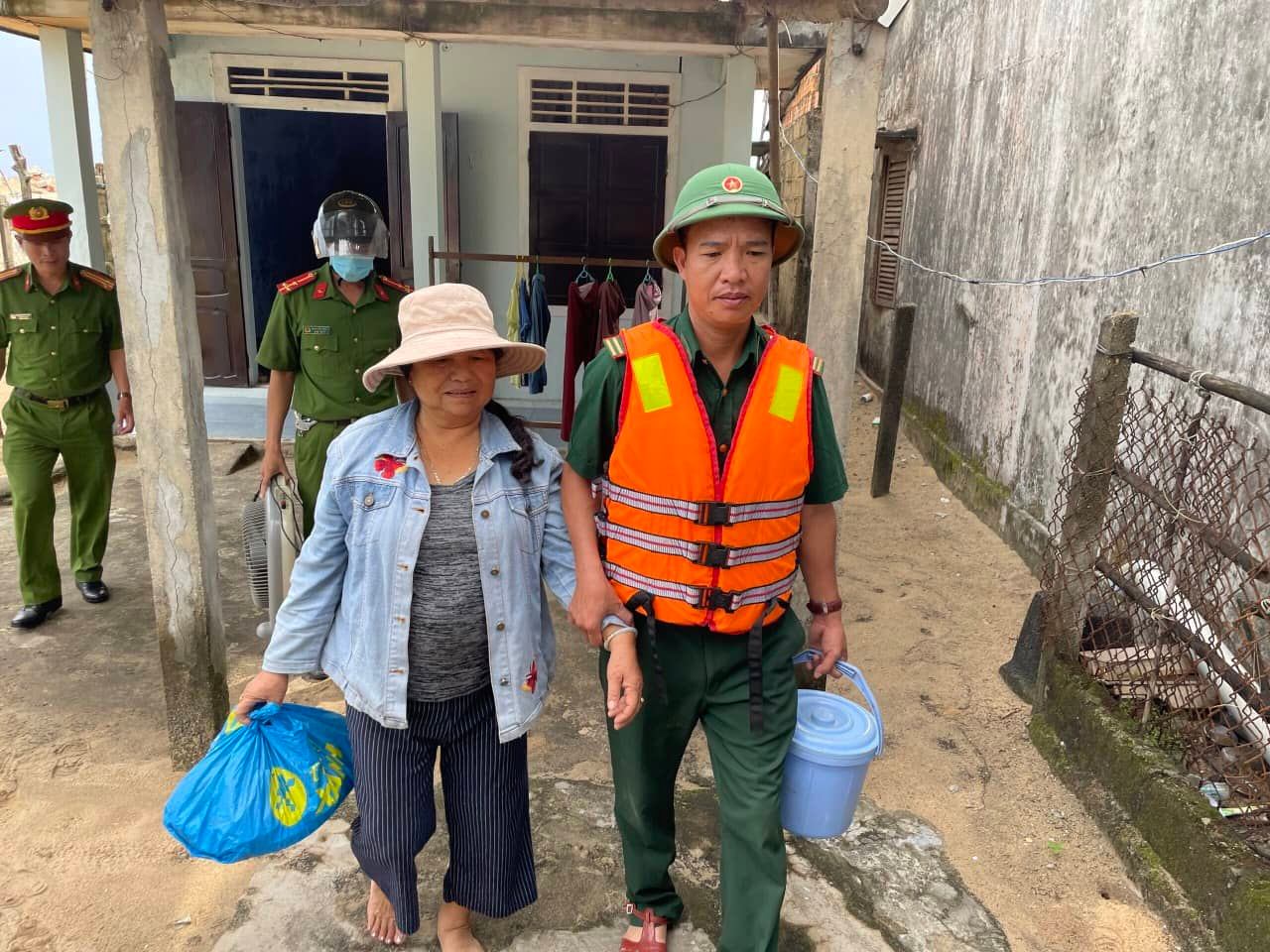 Cán bộ, chiến sĩ Đồn BPCK cảng Thuận An giúp dân đến nơi an toàn tránh bão