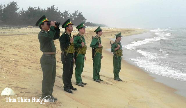Cán bộ, chiến sĩ Đồn Biên phòng Vinh Xuân tăng cường tuần tra, kiểm soát. Ảnh: Quốc Tuấn
