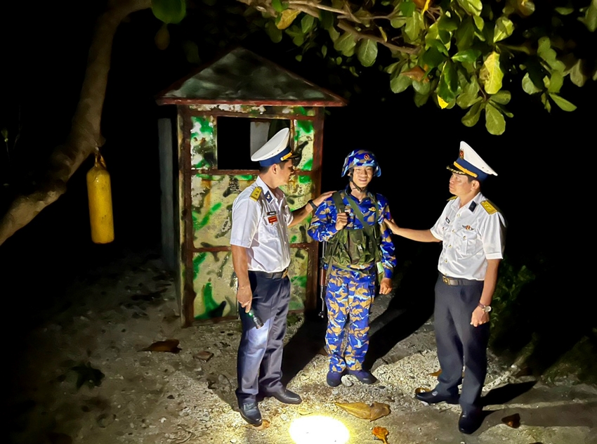 | Động viên, khích lệ chiến sĩ làm nhiệm vụ canh gác trên đảo trong đêm giao thừa |