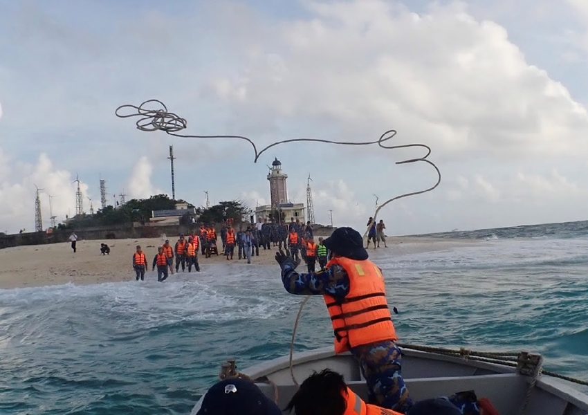 Ban đầu không giấu được lo lắng, nhưng nhìn gương mặt dày dặn phong ba của Trung úy chuyên nghiệp Trần Trung Kiên vẫn bình thản; anh vẫn vững tay lái, ai nấy dần yên tâm. Khi ca nô cập được mạn tàu, với sự hỗ trợ của “hàng rào” cán bộ, chiến sĩ tàu 561, toàn bộ phóng viên và 4 người dân trên đảo (một gia đình gồm vợ chồng và con nhỏ; người vợ đang mang thai đứa con thứ hai được 7 tháng) trở về đất liền, đã lên tàu bình an.