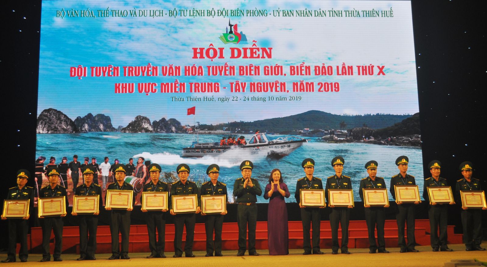 | Bộ Văn hóa, Thể thao và Du lịch tặng 13 Bằng khen cho các đơn vị có thành tích xuất sắc trong tham gia Hội diễn; tặng Bằng khen cho 2 tập thể và 10 cá nhân thuộc BĐBP có thành tích xuất sắc trong phối hợp tổ chức hội diễn; Cục Văn hóa cơ sở/Bộ Văn hóa, Thể thao và Du lịch tặng 35 Huy chương Vàng, 25 Huy chương Bạc cho các tiết mục; Bộ Tư lệnh BĐBP tặng 13 Bằng khen cho các cá nhân có thành tích xuất sắc trong tham gia hội diễn và hoạt động phong trào văn hóa - văn nghệ giai đoạn 2017 – 2019. |