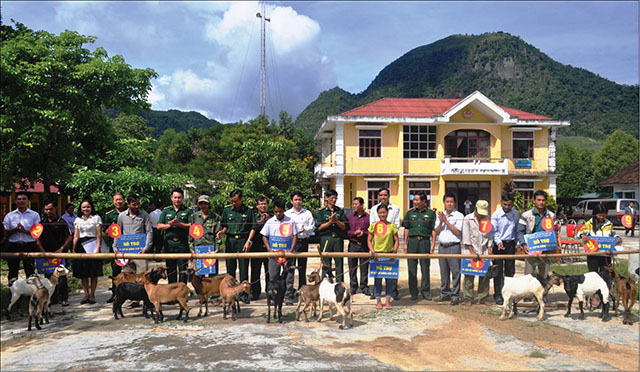 Phong trào giúp dân biên giới phát triển kinh tế đã trở thành nét đẹp trong đời sống cán bộ, chiến sĩ biên phòng (trong ảnh: Đồn BPCK Hồng Vân hỗ trợ dê giống cho đồng bào nghèo trên địa bàn)