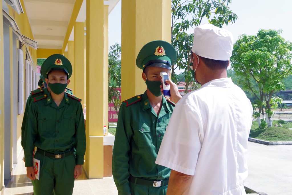 Trước giờ ra thao trường, tân binh được kiểm tra thân nhiệt
