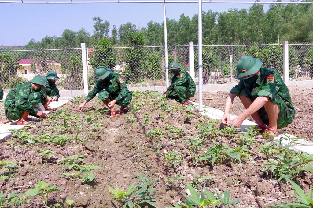 Sau giờ học tập, huấn luyện, họ tham lại tăng gia sản xuất