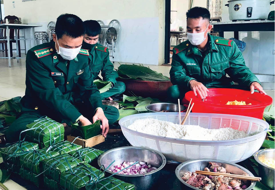 Gói bánh chưng chuẩn bị cái Tết tươm tất cho cán bộ, chiến sĩ ở lại với biên cương