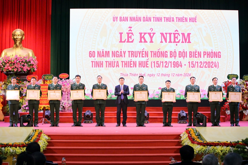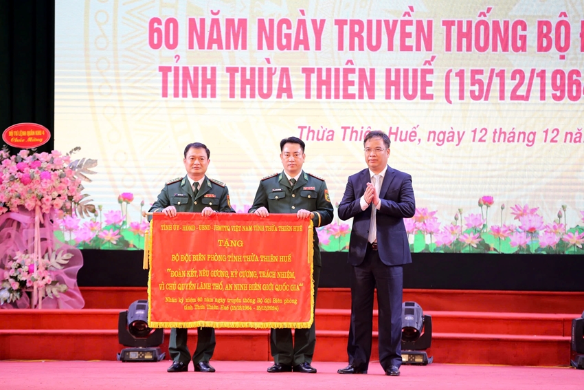 HNN.VN - Ngày 12/12, UBND tỉnh long trọng tổ chức lễ kỷ niệm 60 năm Ngày truyền thống Bộ đội Biên phòng (BĐBP) tỉnh (15/12/1964 - 15/12/2024). Đến dự có Thiếu tướng Nguyễn Văn Thiện, Phó Tư lệnh Bộ đội Biên phòng; các ông: Phạm Đức Tiến, Phó Bí thư thường trực Tỉnh ủy; Nguyễn Thanh Bình, UVTV Tỉnh ủy, Phó Chủ tịch thường trực UBND tỉnh; Phan Quý Phương, Phó Chủ tịch UBND tỉnh.