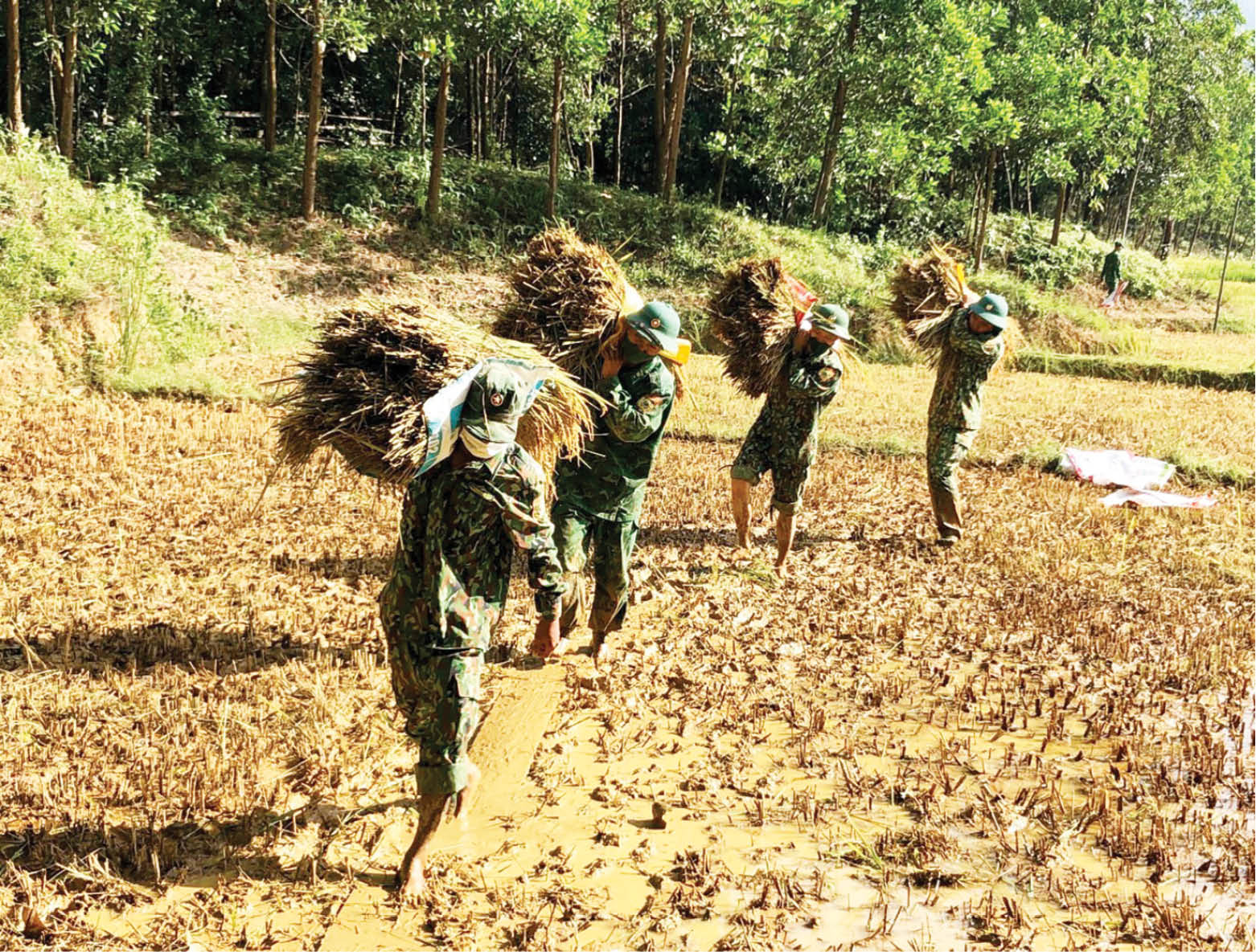 Gặt lúa giúp người dân khu vực biên giới