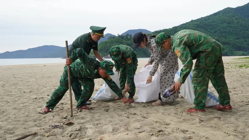 HNN.VN - Ngày 8/6, Đồn Biên phòng Lăng Cô và Đại đội Cơ động (Phú Lộc) phối hợp các đơn vị và Nhân dân thị trấn Lăng Cô, hưởng ứng tuần lễ biển đảo; tháng hành động vì môi trường và ra quân làm sạch biển năm 2024, đã thu gom hơn 1 tấn rác thải các loại.