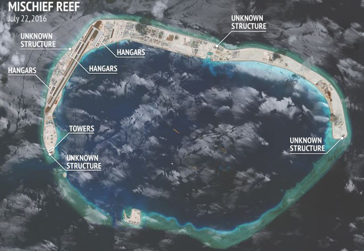 Trung Quốc đã bất chấp dư luận quốc tế, bồi đắp trái phép các bãi đá, rạn sạn hô ở Biển Đông thành các đảo nhân tạo và không ngừng quân sự hóa các thực thể này, hòng củng cố yêu sách chủ quyền phi lý của họ trên Biển Đông, phớt lờ phán quyết của Tòa trọng tài Quốc tế năm 2016 vốn phủ nhận các yêu sách của Trung Quốc tại vùng biển này.
