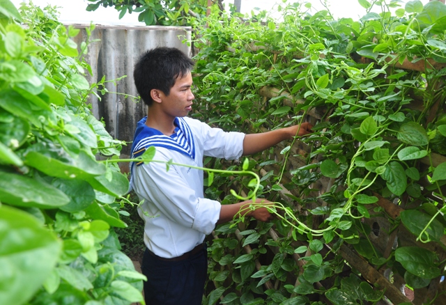 Tăng gia sản xuất rau xanh trên đảo. Ảnh: Thái Bình