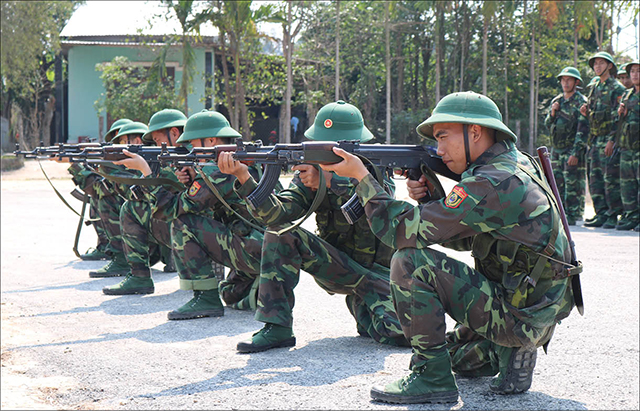 Vừa hoàn thành bài tập kỹ thuật bắn súng tiểu liên AK, tân binh Nguyễn Kính Trí (1996), sinh viên vừa tốt nghiệp Trường đại học Sư phạm Huế ngành Giáo dục Quốc phòng - An ninh hồ hởi “khoe” được “sờ tận tay” và sử dụng các loại vũ khí. Trí và các đồng đội được cán bộ huấn luyện hướng dẫn tận tình từng động tác, tư thế ngắm bắn.