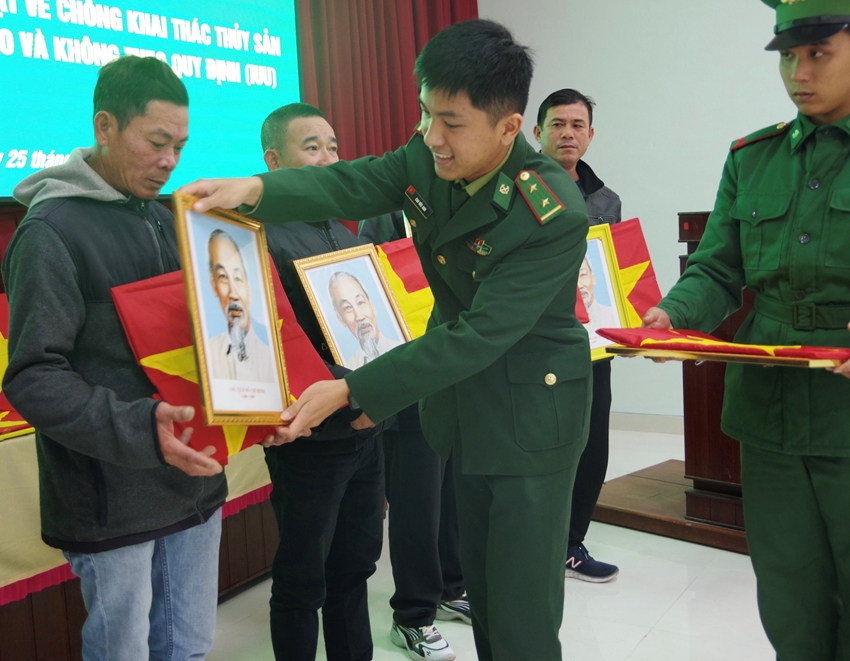 Dịp này, đơn vị đã trao tặng gần 300 ảnh Bác Hồ và cờ Tổ quốc cho các đối tượng tham gia buổi tuyên truyền, nhằm động viên tinh thần bà con ngư dân an tâm vươn khơi bám biển, góp phần bảo vệ chủ quyền của Tổ quốc.