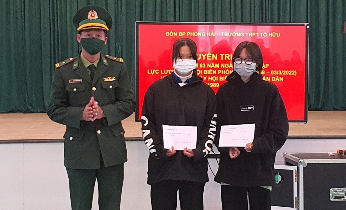 Cũng tại buổi tuyên truyền, Đồn Biên phòng Phong Hải đã trao quà "Nâng bước em đến trường" cho hai em học sinh có hoàn cảnh khó khăn.