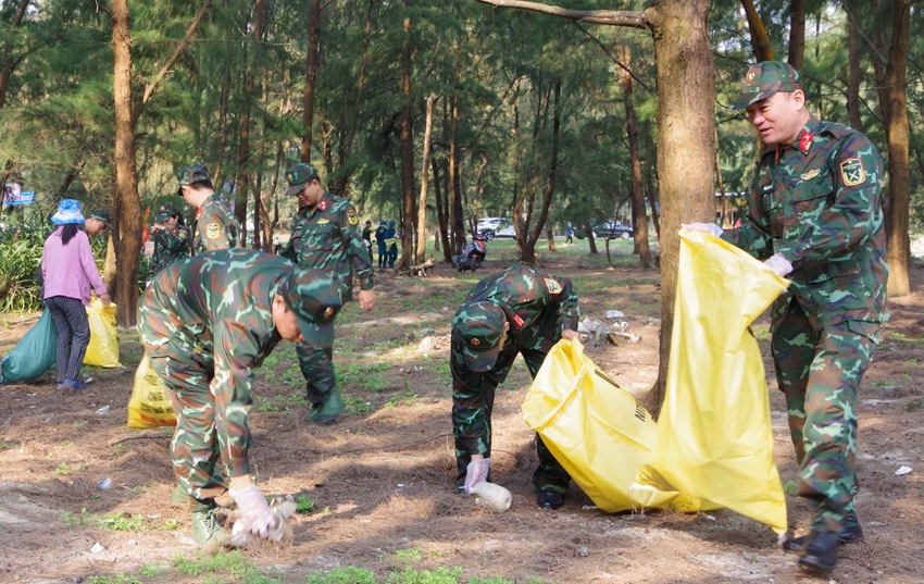 Sau phần lễ, hàng trăm cán bộ sĩ quan, nhân viên Phòng Chính trị Bộ CHQS tỉnh , lực lượng dân quân tự vệ, đoàn viên thanh niên và các lực lượng của địa phương cùng người dân đã tổ chức dọn dẹp vệ sinh môi trường xung quanh các nhà dân sinh sống gần biển, thu nhặt rác thải trên các khu vực bãi ngang và bãi biển xã Hải Dương. Sau gần 2 giờ làm việc tích cực, khẩn trương, các lực lượng đã thu gom, xử lý được hàng tấn rác thải các loại, làm sạch hàng trăm mét bãi ngàng và dọc bờ biển xã Hải Dương và các khu vực lân cận.