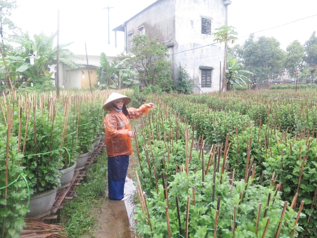 Chị Trương Thị Thúy Vân, thôn Vân Dương xã Thủy Vân đang chăm sóc hoa chuẩn bị phục vụ Tết