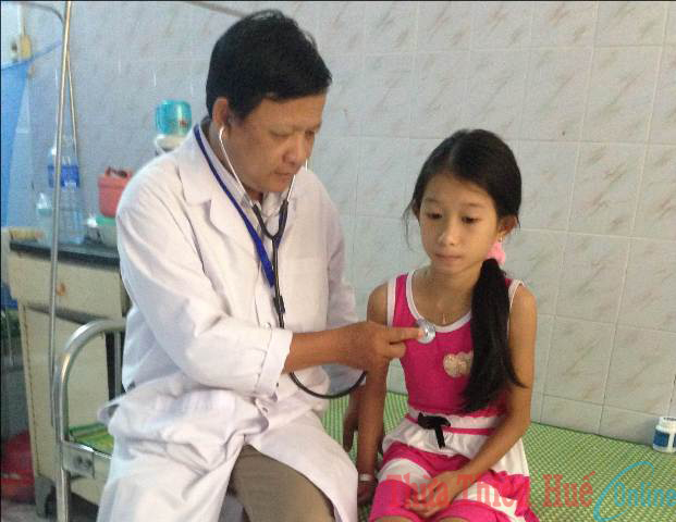 Bác sĩ Trương Như Sơn, đang khám một bệnh nhân Khoa nhi