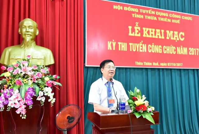 HNN.VN - Ngày 7/10, Hội đồng Tuyển dụng công chức (TDCC) tỉnh tổ chức khai mạc kỳ thi tuyển công chức năm 2017. Đến dự và chỉ đạo kỳ thi có ông Nguyễn Dung, Phó Chủ tịch UBND tỉnh, Chủ tịch Hội đồng TDCC tỉnh.