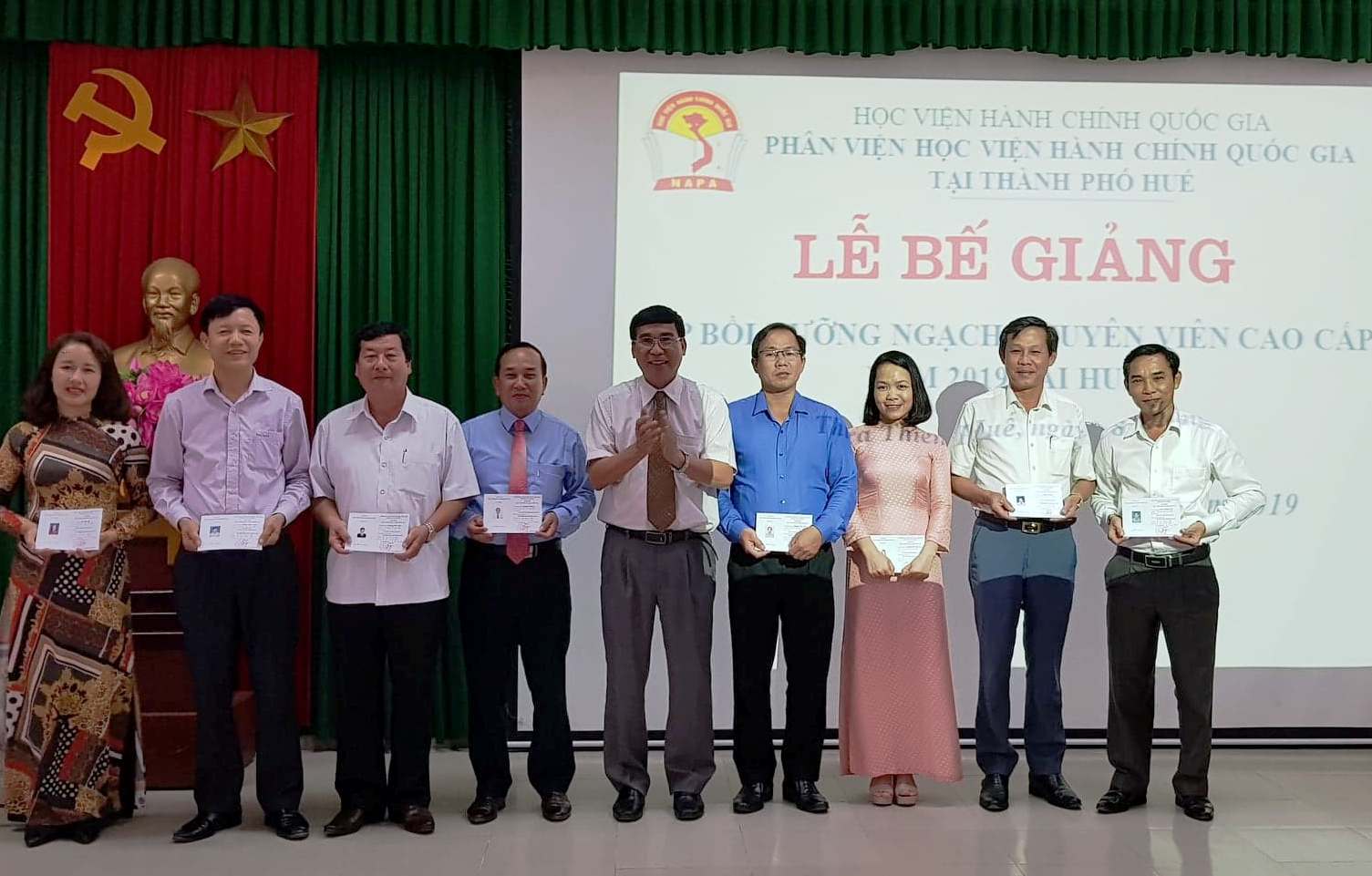 HNN.VN - Sau hơn 1 tháng học tập tại Cơ sở Học viện Hành chính quốc gia tại Huế, chiều 28/6, 31 học viên lớp bồi dưỡng ngạch chuyên viên cao cấp đến từ các tỉnh miền Trung đã hoàn thành khóa học, bế giảng và được cấp chứng chỉ.