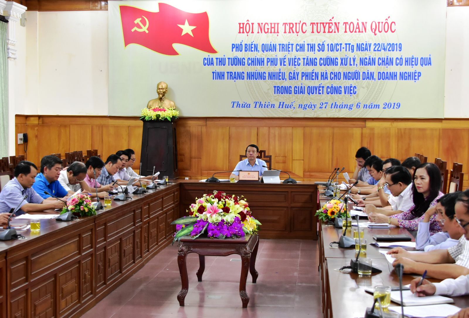 Tại điểm cầu Thừa Thiên Huế, Phó Chủ tịch UBND tỉnh Phan Thiên Định và lãnh đạo các sở, ban, ngành cùng tham dự.