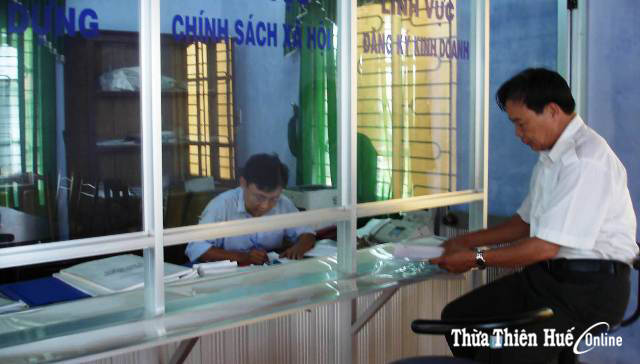 Người dân làm thủ tục hành chính ở Bộ phận Tiếp nhận và trả kết quả ở huyện Phong Điền. Ảnh: Hào Vũ