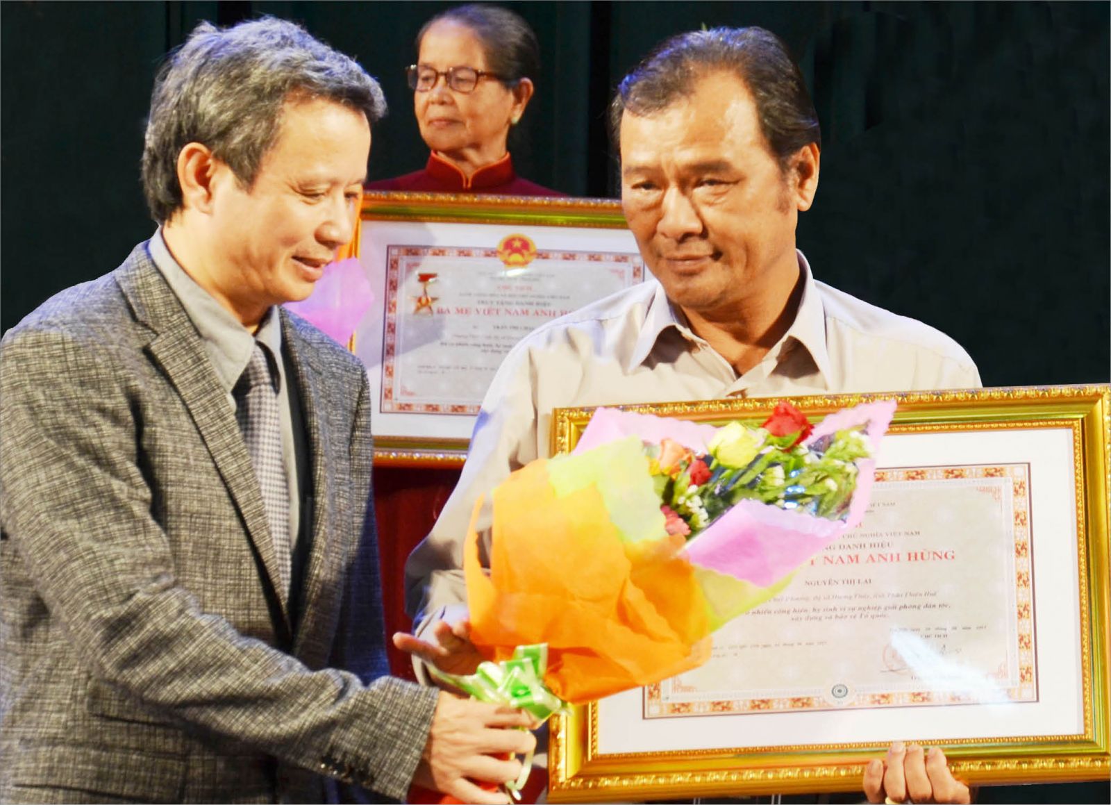 UVTW Đảng, Bí thư Tỉnh ủy Lê Trường Lưu trao danh hiệu Mẹ Việt Nam Anh hùng cho đại diện thân nhân các Mẹ. Ảnh: Võ Nhân