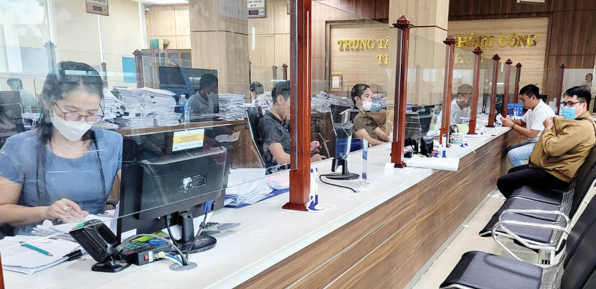 Người dân thực hiện các thủ tục đất đai tại Trung tâm Hành chính công TP. Huế