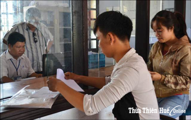 Người dân giao dịch thủ tục hành chính ở phường Hương Chữ