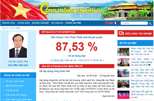 Giao diện Cổng thông tin điện tử tỉnh của Văn phòng UBND tỉnh