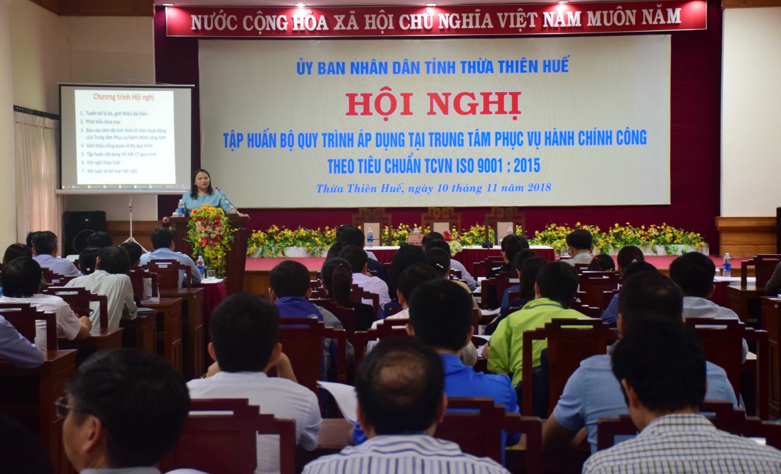 HNN.VN - Sáng 10/11, UBND tỉnh tổ chức hội nghị tập huấn bộ quy trình áp dụng tại Trung tâm phục vụ hành chính công tỉnh theo tiêu chuẩn TCVN ISO 9001: 2015 cho hơn 300 công chức thuộc trung tâm hành chính công, giải quyết thủ tục hành chính (TTHC) cấp sở, huyện, xã.
