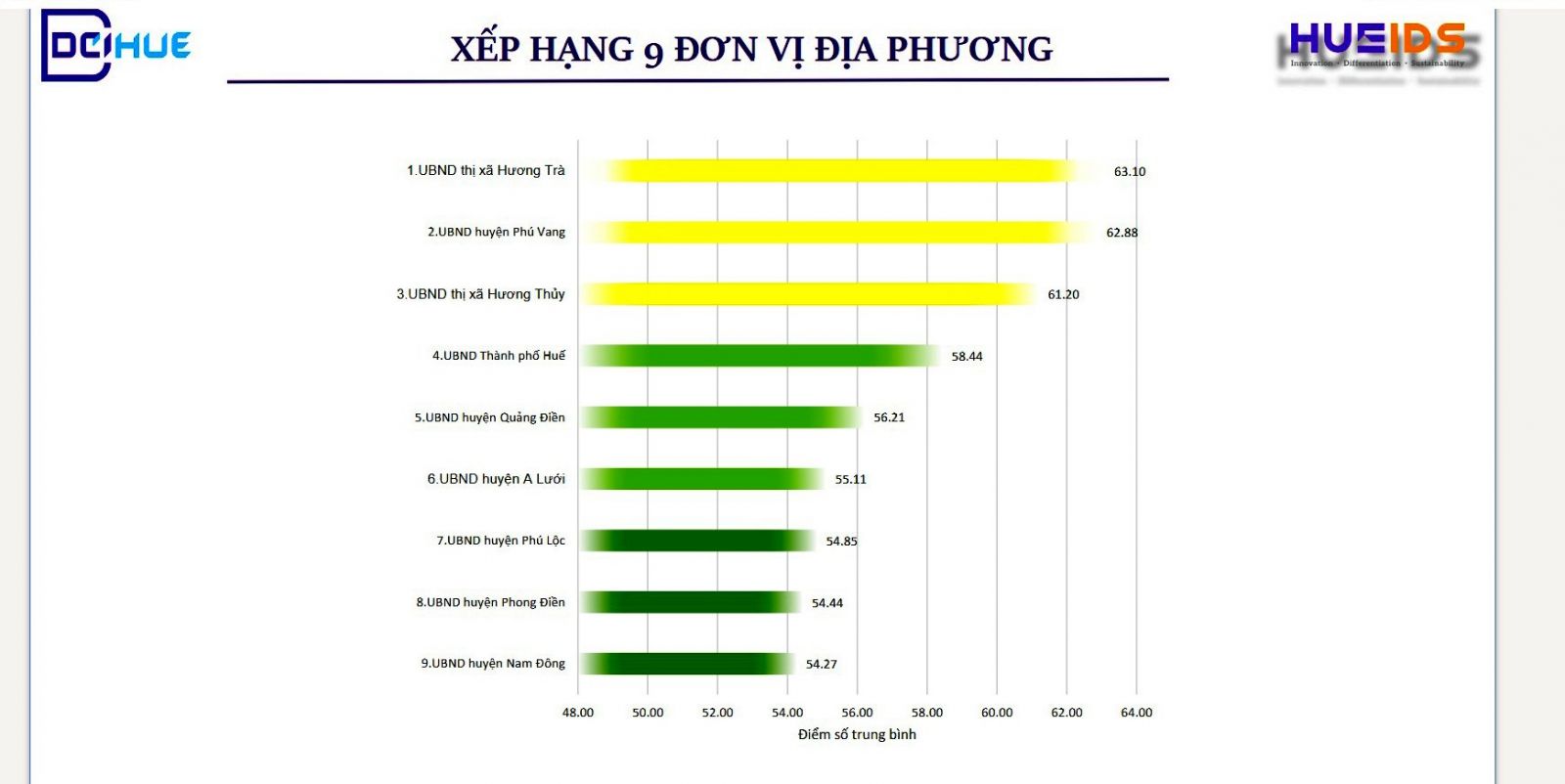 Nằm trong top 5 các đơn vị dẫn đầu nhóm các sở, ban ngành, xếp sau Sở Thông tin và Truyền thông lần lượt là Sở Kế hoạch và Đầu tư, Sở Y tế, Sở Xây dựng và Cục Hải quan. Đối với nhóm các địa phương xếp sau UBND TX. Hương Trà lần lượt là UBND huyện Phú Vang, UBND thị xã Hương Thủy, UBND thành phố Huế và UBND huyện Quảng Điền.