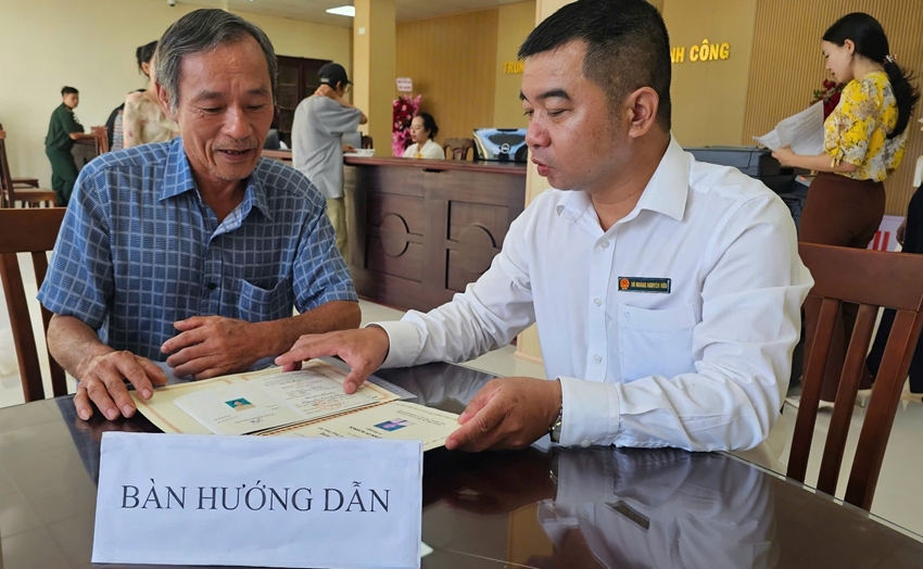 | Cán bộ Trung tâm Phục vụ hành chính công phường Thủy Xuân hướng dẫn người dân làm thủ tục hành chính |