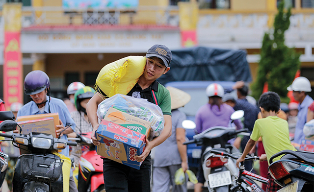 Sau bão lũ, các đoàn thiện nguyện về Huế hỗ trợ cho người dân nhiều hơn. Ảnh: NGUYỄN PHONG