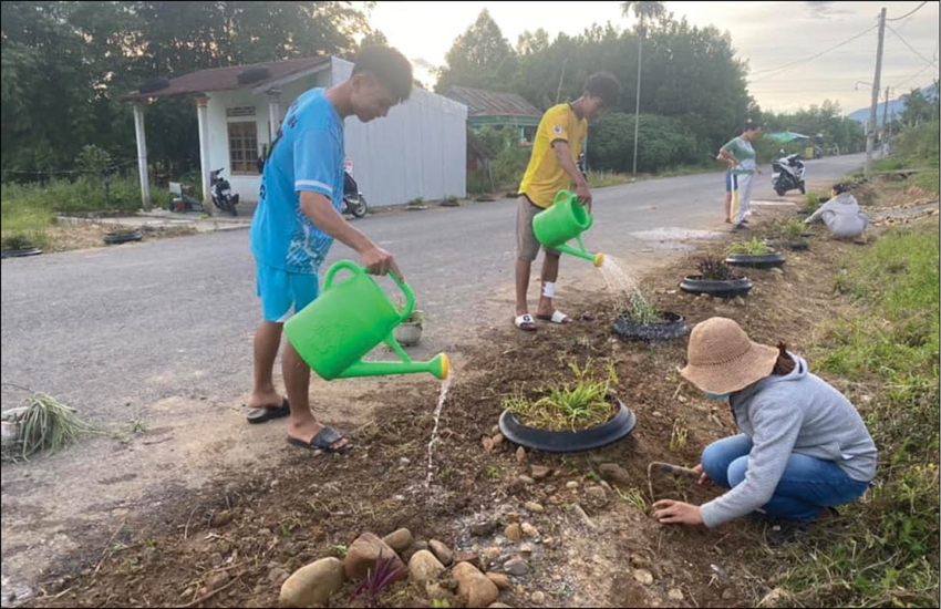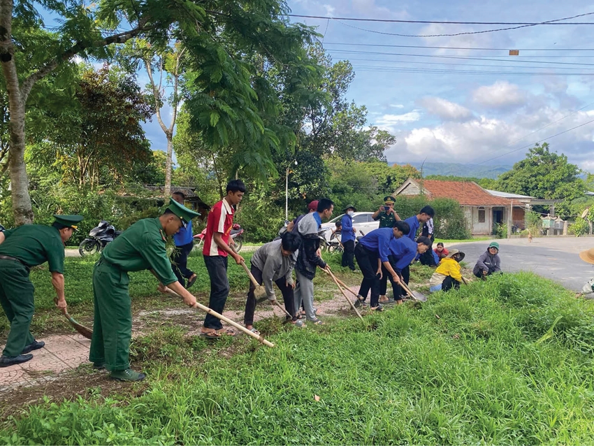 | Đoàn viên, thanh niên và người dân cùng nhau dọn vệ sinh xóm làng đã trở thành một nét đẹp quen thuộc |