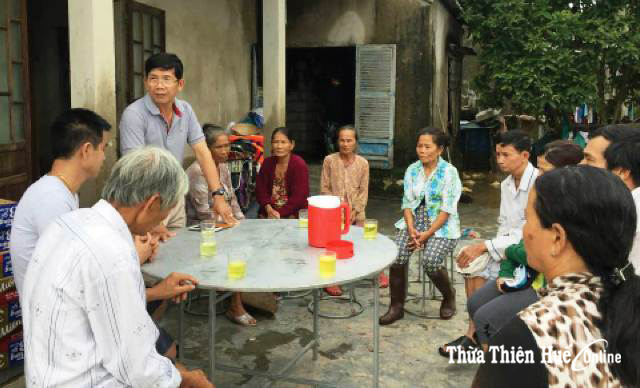 Chủ tịch UBND xã Vinh Thái đến thăm hỏi người dân đang bị cô lập vì lũ lụt