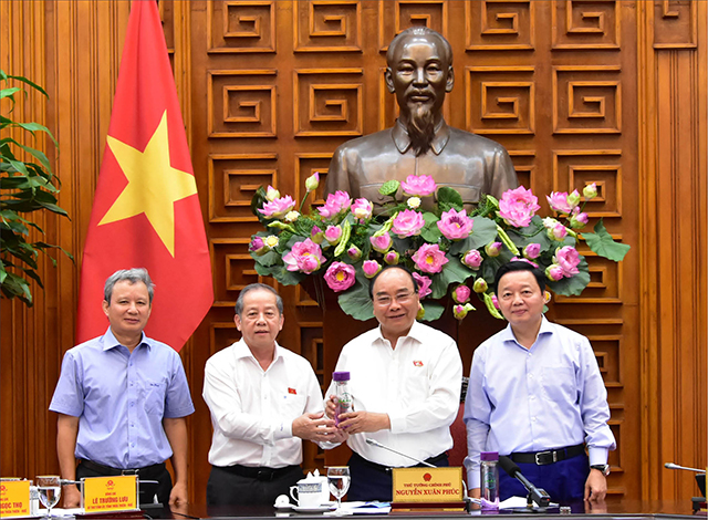 Hưởng ứng việc Chính phủ từ đầu tháng này không sử dụng nước uống đóng chai nhựa sử dụng một lần tại các cuộc họp, lãnh đạo tỉnh đã tặng Thủ tướng Nguyễn Xuân Phúc một số chai đựng nước bằng thủy tinh, sử dụng nhiều lần.